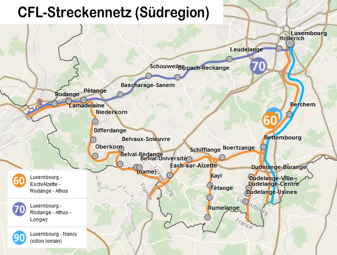 Carte: Réseau CFL du Sud